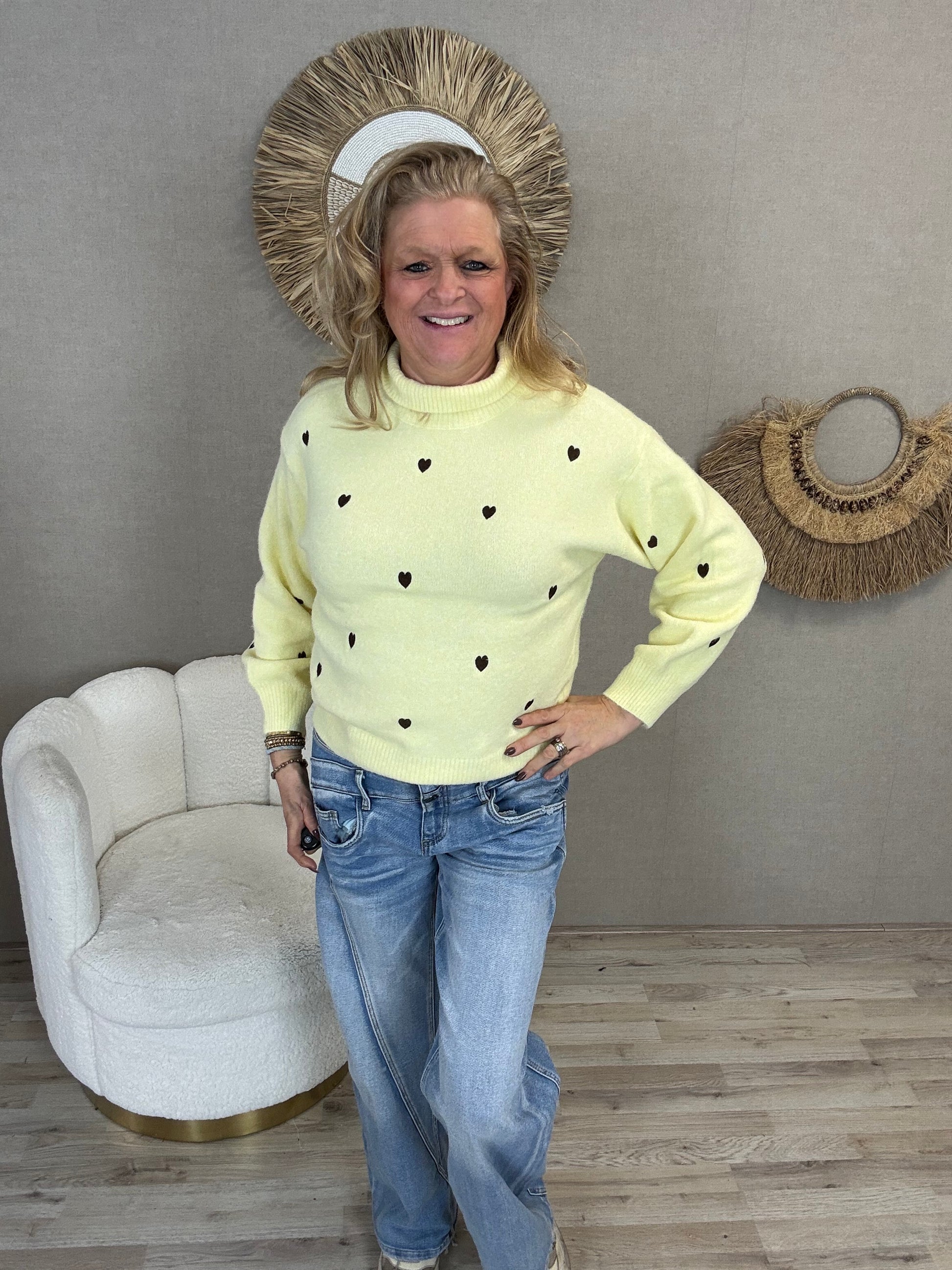 Details: LOVE IT! Deze sweater heeft een super leuke hartjes op de trui en in een geweldige lente kleur. Super zacht.