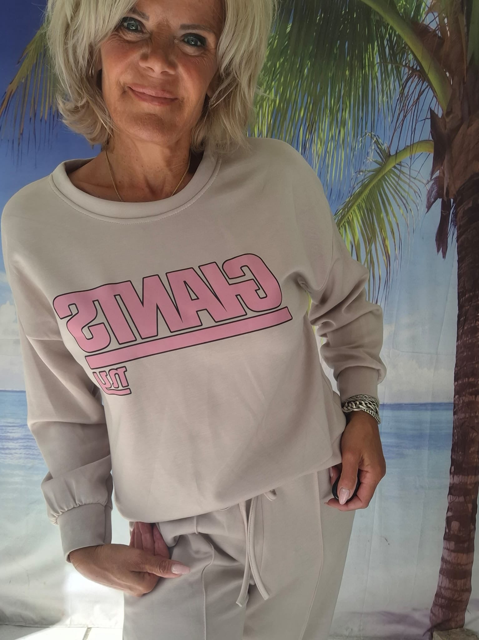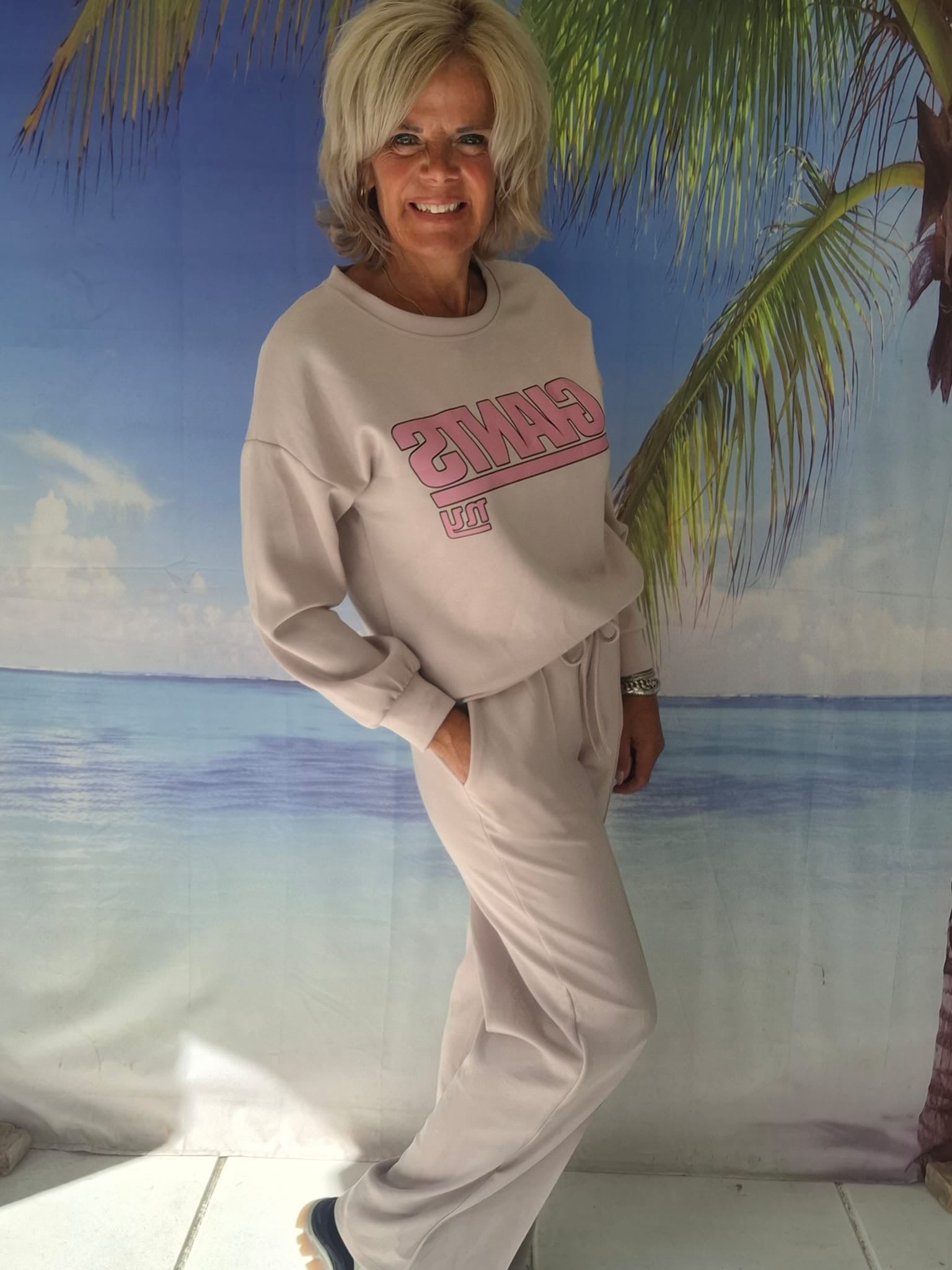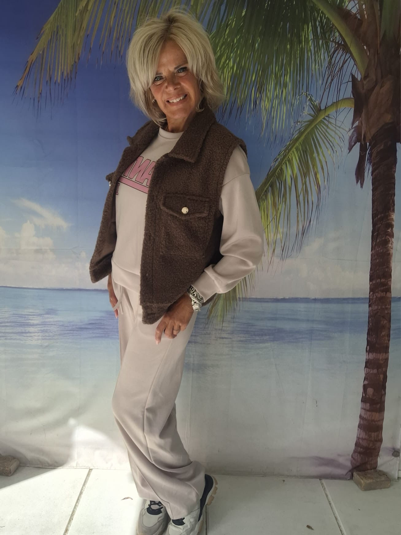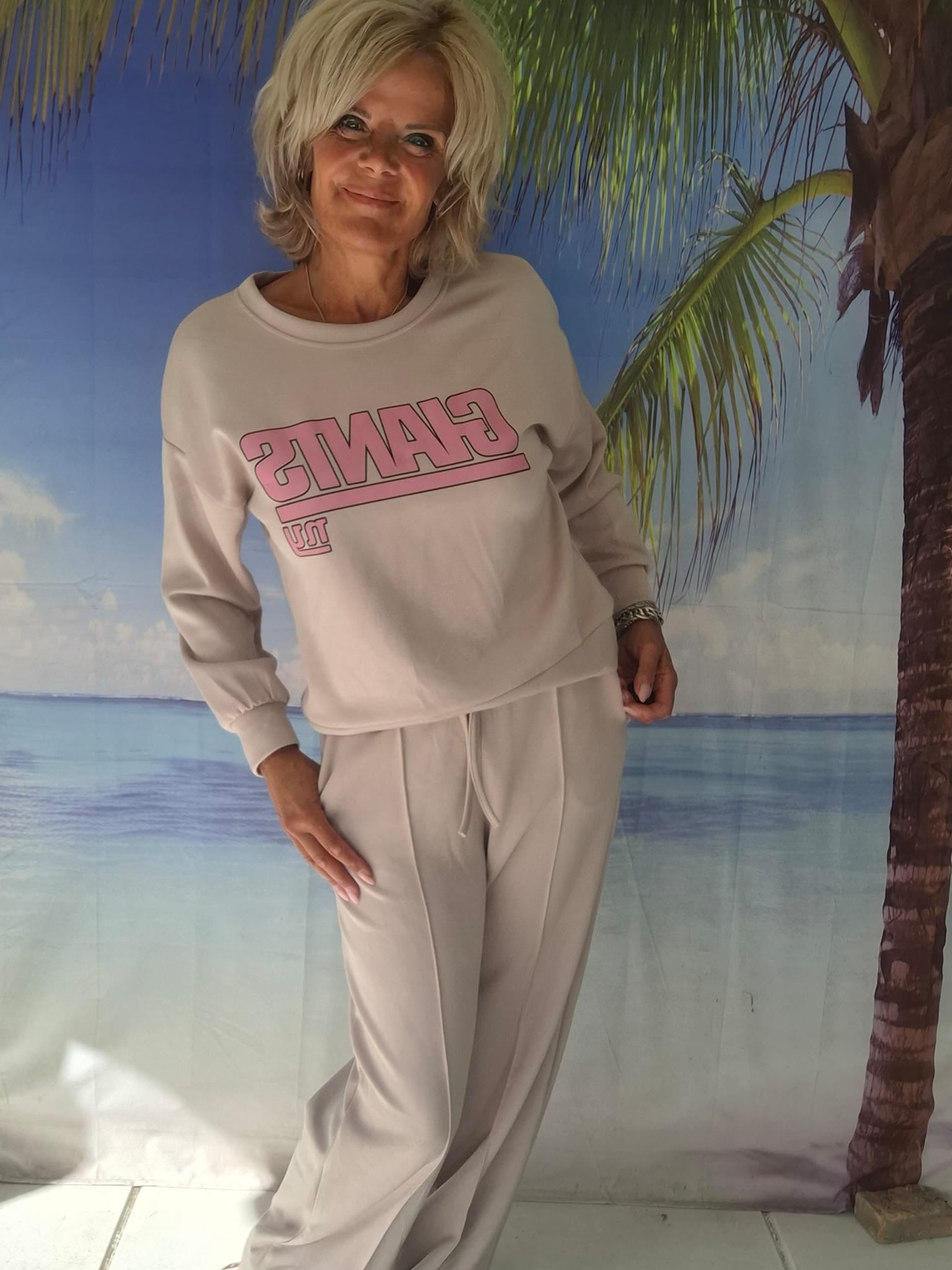 Details :Stap in ultiem comfort met dit stijlvolle tweedelige pak. De zachte sweater en bijpassende broek met wijde pijp vormen samen de perfecte combinatie van loungewear en streetstyle. Gemaakt van een soepele, ademende stof die fijn aanvoelt op de huid, ideaal om thuis in te relaxen maar ook makkelijk te stylen voor een casual look buitenshuis.