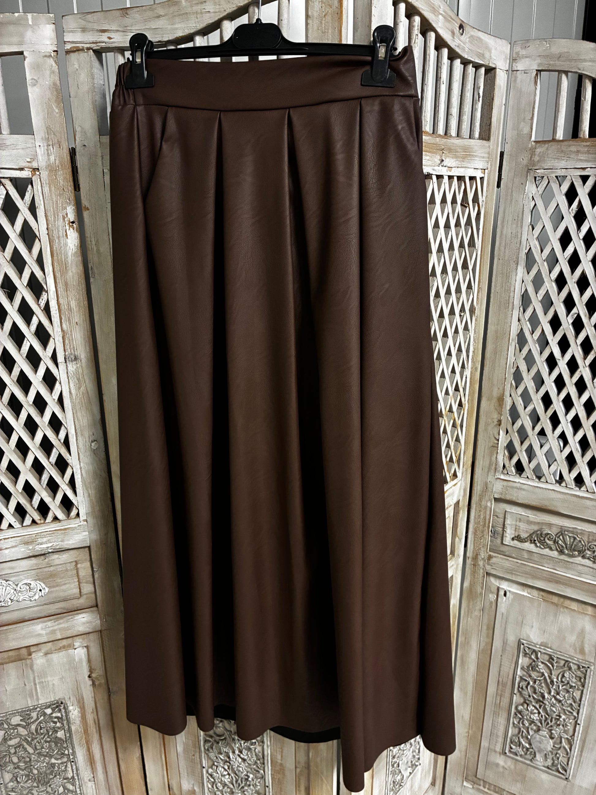 Details : Ontdek onze prachtige PU rok Sky – een echte eyecatcher! Deze stijlvolle lange rok heeft speelse plooien aan de voorkant en handige steekzakjes. De elastische band aan de achterkant zorgt voor extra draagcomfort en een perfecte pasvorm.