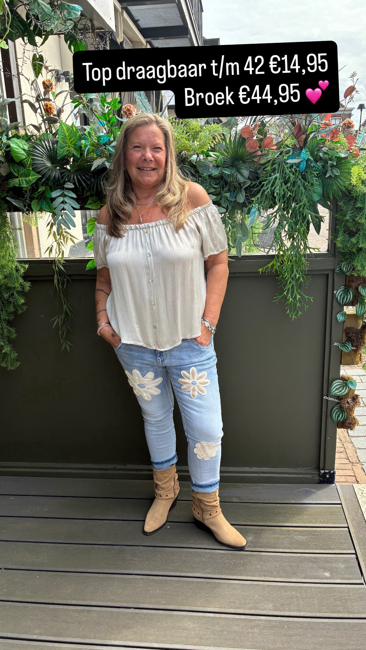 Petra is 168 cm lang en draagt gewoonlijk maat 40/42