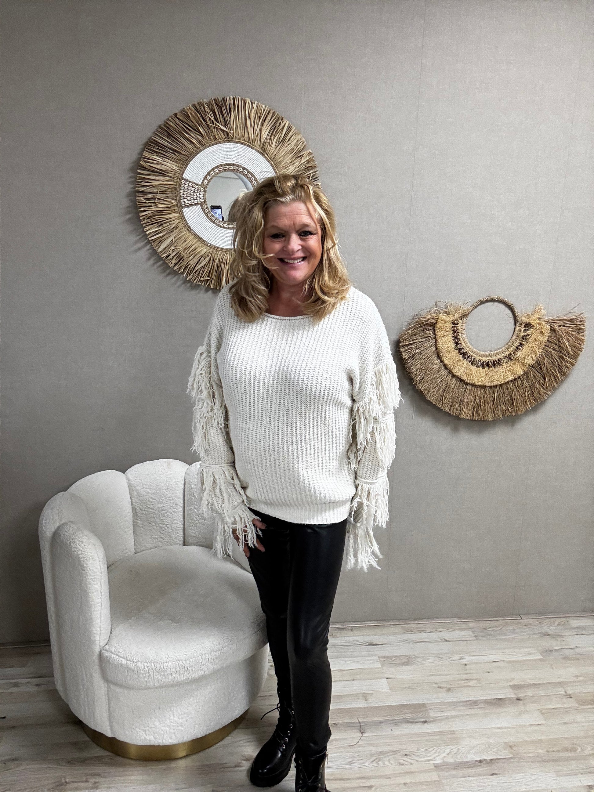 Details: Deze trui met franjes aan de mouwen is een echte musthave!