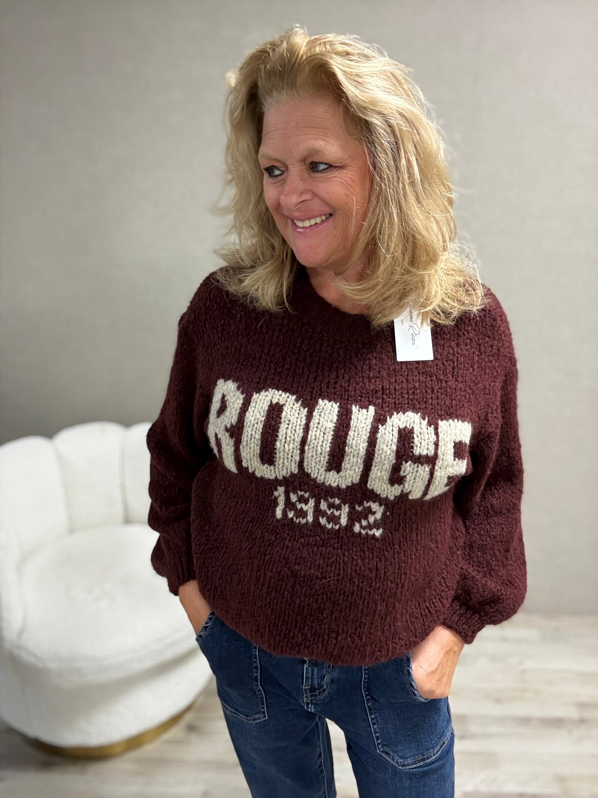 Heerlijk warme gebreide trui met de tekst Rouge op de voorkant. De ronde hals en zachte stof zorgen voor ultiem draagcomfort. Een echte musthave voor de koudere dagen! Verkrijgbaar in drie stijlvolle kleuren.