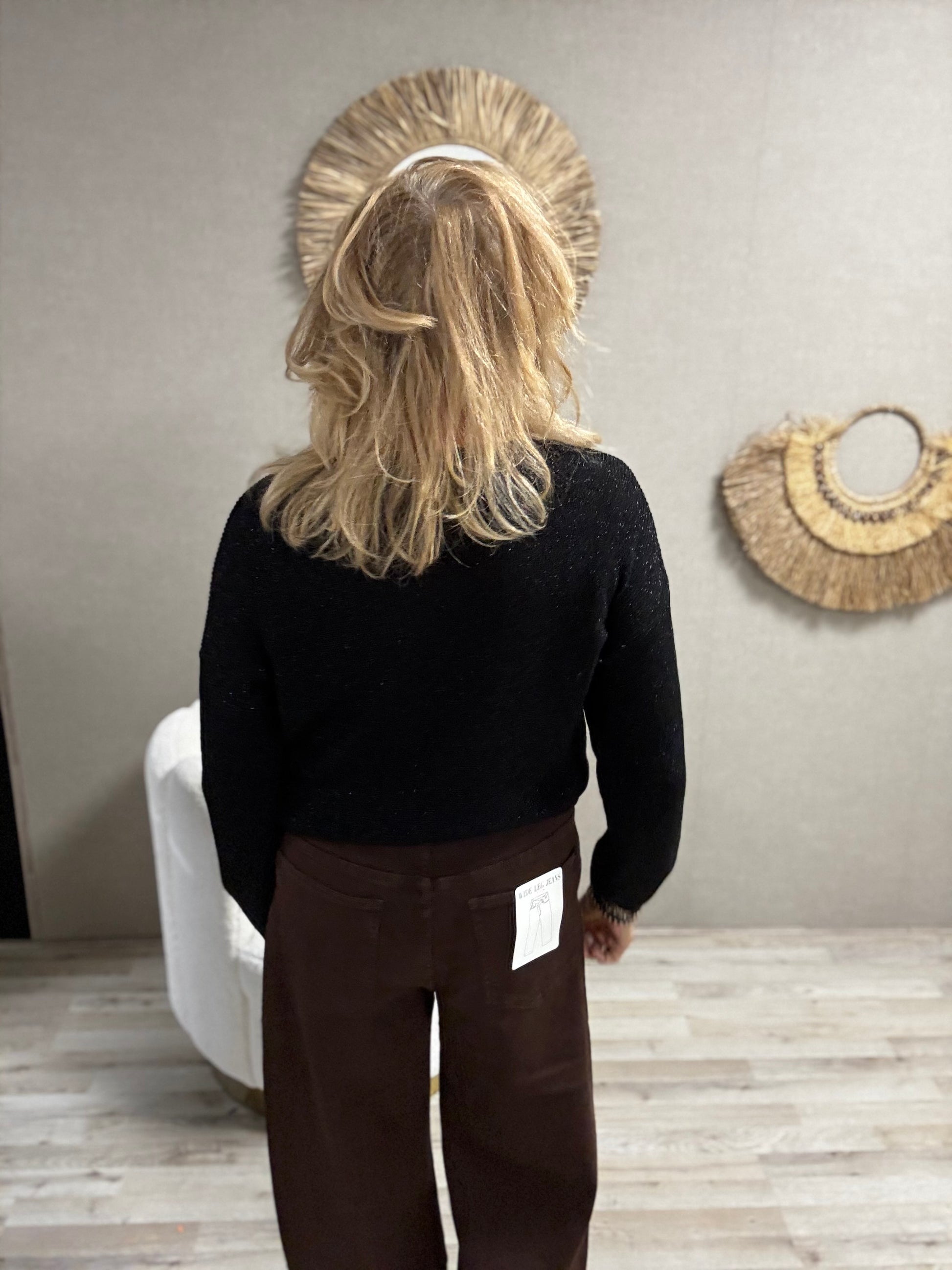 Laat jezelf stralen met het Nina truitje.De stijlvolle V-hals en de subtiele zwarte lurex glitters geven deze top een chique, feestelijke uitstraling.