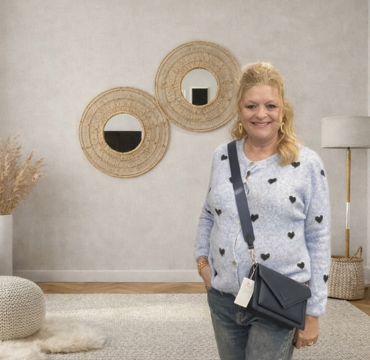 Dit comfortabele vest is gemaakt van een heerlijk zachte stof en draagt super fijn. Het vest heeft een knoopsluiting aan de voorkant en is afgewerkt met schattige hartjes op de voorkant en de mouwtjes. De achterkant is effen, wat zorgt voor een rustige en stijlvolle uitstraling.